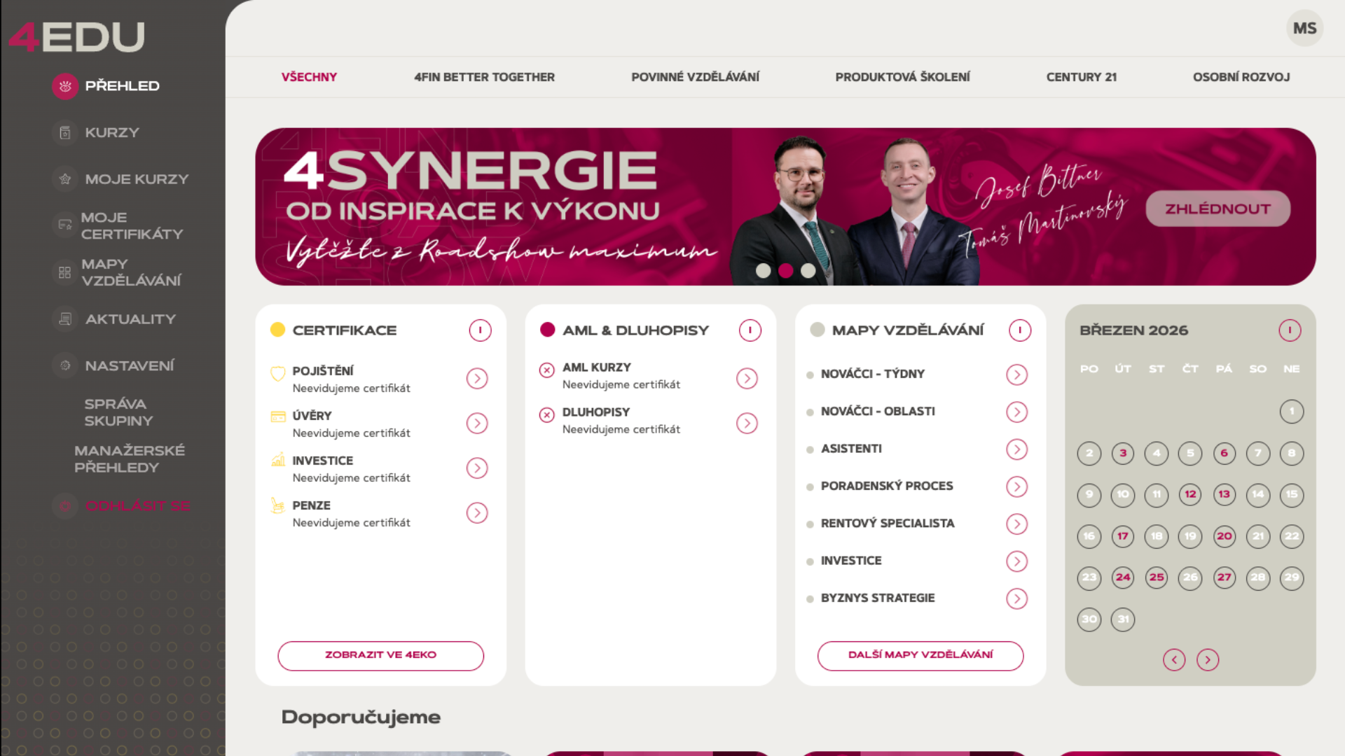 Povinnost následného vzdělávání si můžete splnit přímo v portálu 4EDU. Jednoduše, přehledně, kdykoliv.